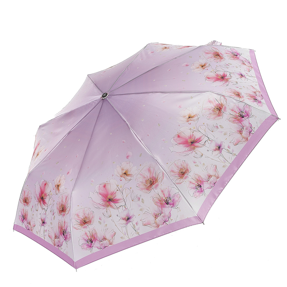 Зонт-автомат тройного сложения итальянского бренда FABRETTI с необычным градиентом сиреневых тонов, украшенный романтичным принтом в виде цветущих магнолий в акварельном стиле. Купол выполнен из гладкого искусственного сатина с шелковистой фактурой и мягким блеском.Облегченная конструкция зонта изготовлена из алюминия; эргономичная ручка - из пластика с покрытием soft touch.Аксессуар открывается и закрывается одним нажатием кнопки на удобной нескользящей ручке с петлей. Комплекс пружин и звеньев спиц изготовлен из гибкого упругого углепластика и фибергласса и составляет основу системы «антиветер».Зонт дополнен удобным чехлом.