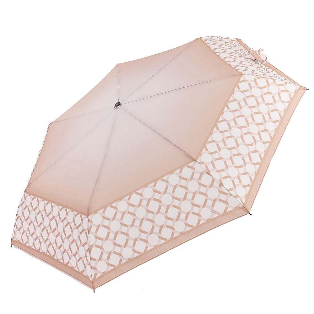 Компактный зонт итальянского бренда FABRETTI легко поместится в сумку и всегда будет под рукой в нужный момент. Купол в белом и бежевом тонах украшен плетеным геометрическим узором-сеткой; выполнен из материала с матовой фактурой эпонж. Она придает ткани высокую прочность и устойчивость к выцветанию.Каркас зонта изготовлен из прочной износостойкой стали; эргономичная ручка - из пластика с матовым покрытием.Аксессуар открывается и закрывается одним нажатием кнопки на удобной нескользящей ручке с петлей. Комплекс пружин и звеньев спиц изготовлен из гибкого упругого углепластика и фибергласса и составляет основу системы «антиветер».Зонт дополнен удобным чехлом.